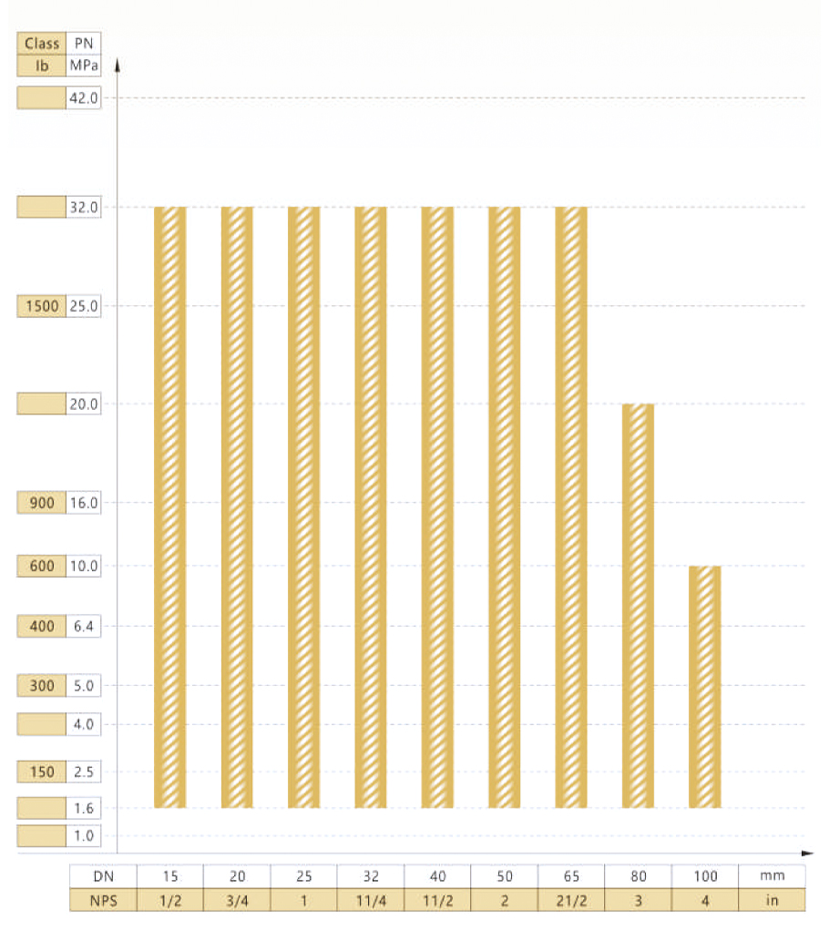FSJ-B100型阀门公称通径与公称压力试验范围