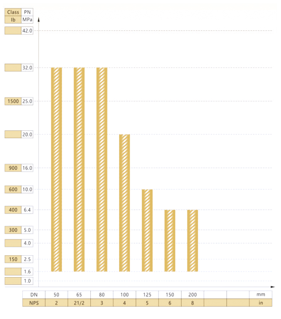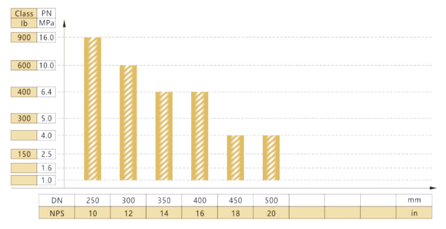 F5J-B500型阀门公称通径与公称压力试验范围