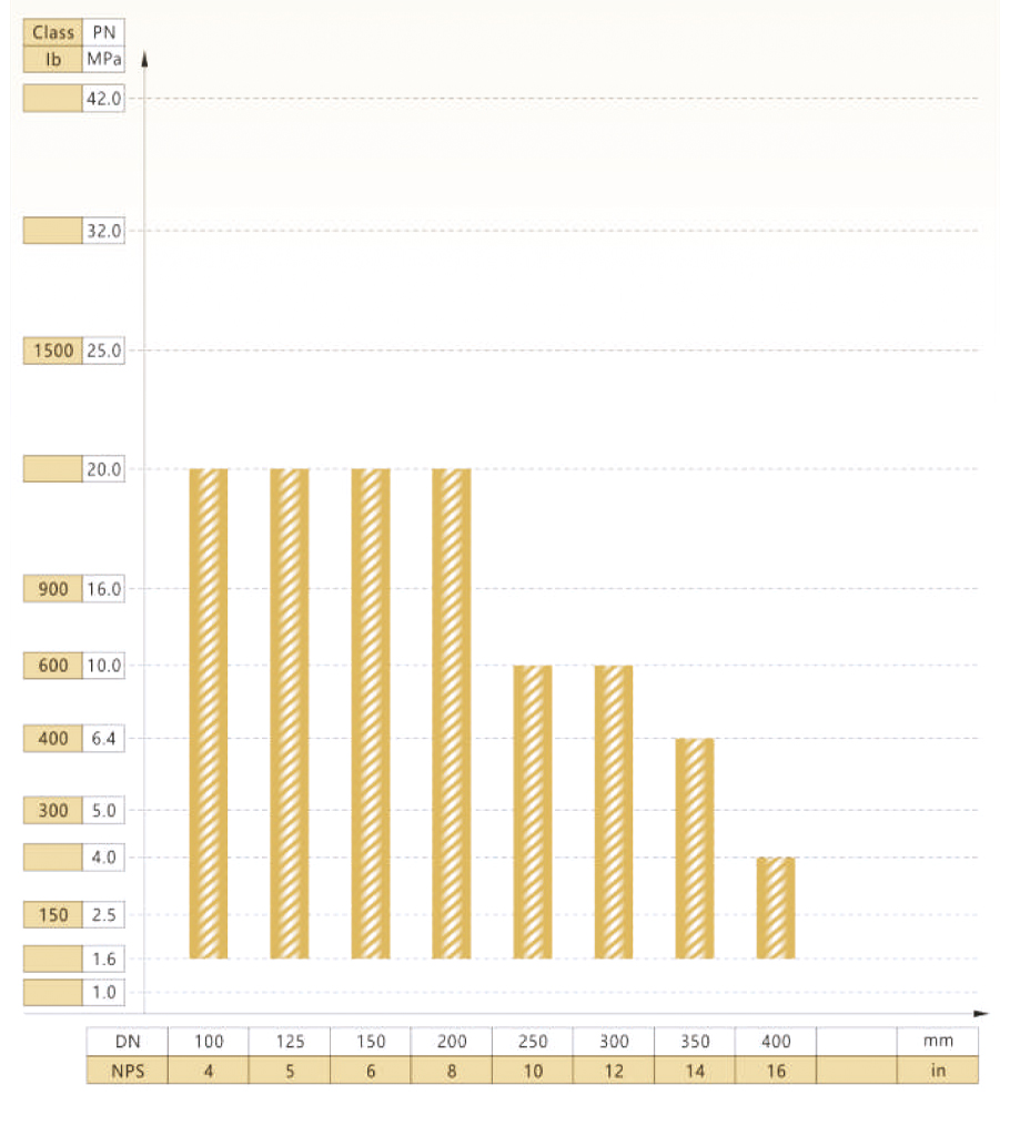 FSJ-B400型阀门公称通径与公称压力试验范围