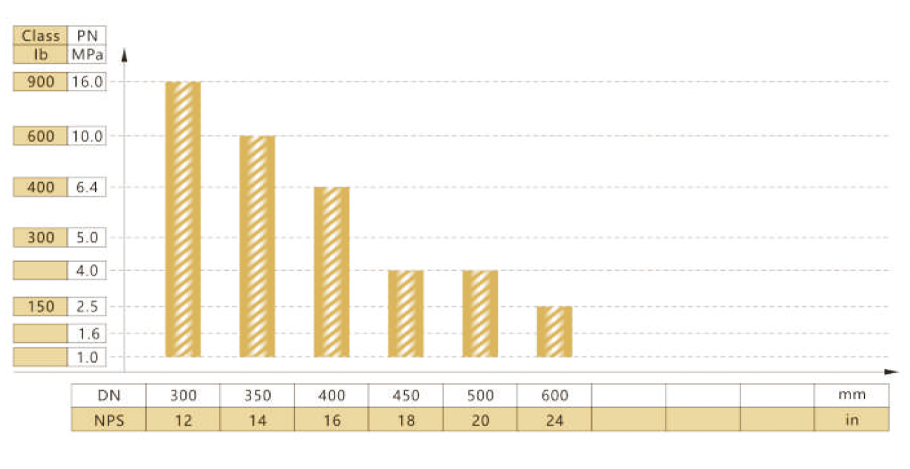 FSJ-B600型阀门公称通径与公称压力试验范围
