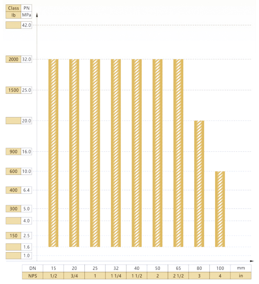FSJ-L100型阀门公称通径与公称压力试验范围