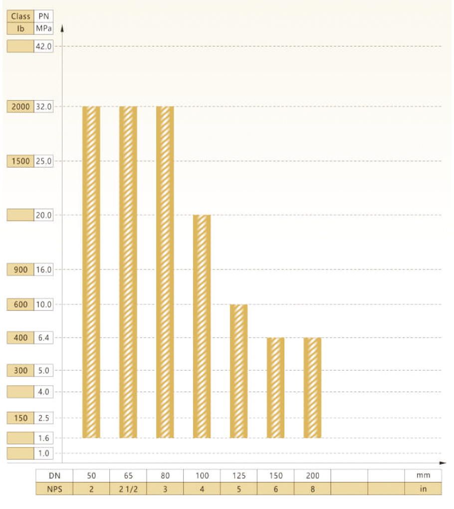 FSJ-L200型阀门公称通径与公称压力试验范围
