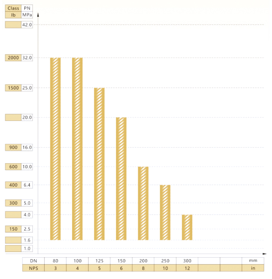 FSJ-L300型阀门公称通径与公称压力试验范围